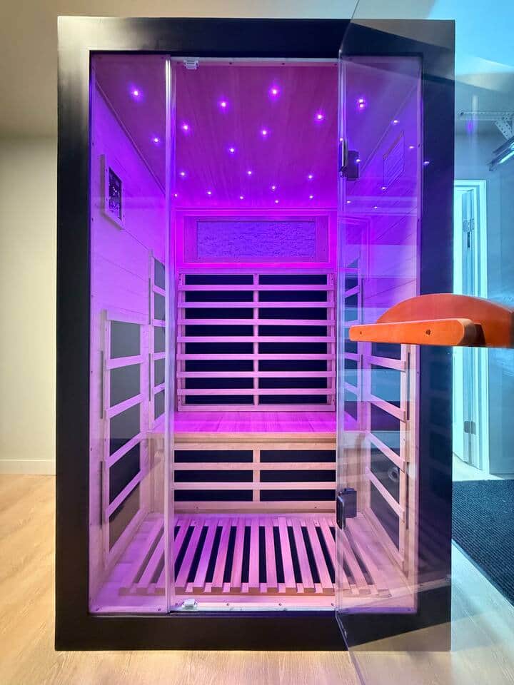 Gym: Includes a treadmill, cycle machine, sauna, 50" TV, and all-in-one washer/dryer combo.
